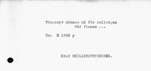 //// Tingsryd nämnas må för rallrägen //// där finnes ... //// • • -é //// • å //// Se: E 1896 y //// KB:S SKILLINGTRYCKSHEG. ////