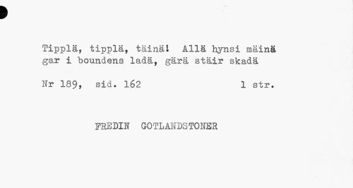//// > //// Tipplä, tippXä, täinät Allä hynsi mäinä gar i boundens lada, gärä stäir skada //// Nr 189, sid. 162 1 str. //// FREDIN GOTLANDS TONER ////