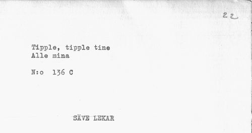 //// 2 2L, //// Tipple, tipple tine Alle mina //// Bfso 136 C //// i | //// SÄTE LEKAR ////