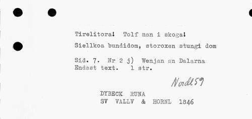 //// •• ¦ ¦ ¦ » . • •¦ . . J. //// Tirelitoral Tolf man i skogal ^fc Siellkoa "bundidom, storoxen stungi dom //// Sid. 7. Nr 2 j) Wenjan sn Dalarna Endast text. 1 str. //// /IfciMI //// DYBECK HUSA //// SY YALLY & HORNL I846 ////