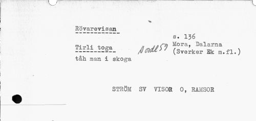 //// Rövarevisan //// " — s# 15g //// m. . . , „ j * Mora, Dalarna //// SL fitidiy? (Sverker Ek m.fl.) tåh man i skoga //// STRÖM SY VlSOffl 0, RAMSOR ////