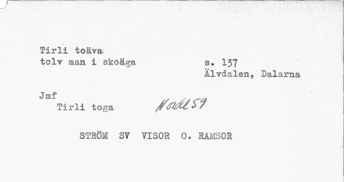 //// * //// Tirli toäva //// tolv man i skoäga e. 137 //// Älvdalen, Dalarna //// Jmf , //// Tirli toga /(TlMS? //// STRÖM SY YISOR 0. RAMSOR ////