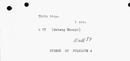 //// Tirlo toga. //// 1 st r. s 27 (Moberg Except) //// /l/adiM //// DYBECK MS FOLKLOHE 3 ////