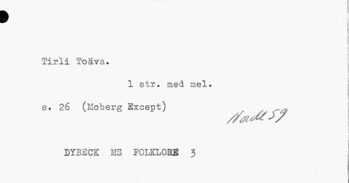 //// ? I //// Tirli Toäva. //// r i //// 1 str. med mel. i //// s. 26 (Moberg Except) //// //jiiM fy //// i [ //// I //// t //// DYBECK MS FOLKLORE 3 ////
