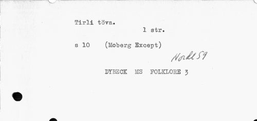 //// Tirli tova. //// 1 str. //// s 10 (Moberg Except) //// /VsJtff //// DYBECK MS FOLKLORE 3 ////