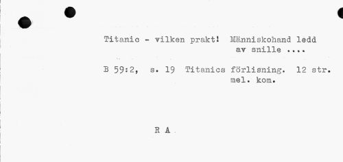 //// •' //// Titanic - vilken prakti Människohand ledd //// av snille ... //// B 59:2, s. 19 Titanics förlisning. 12 str. //// mel. kom. //// R A . ////