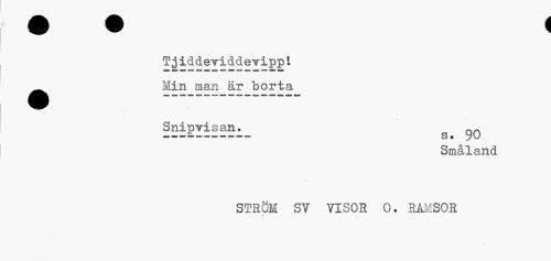 //// Tgiddeviddevippi ^^ Min man är borta //// Sniprisan. „ //// ---s. 90 //// Småland STRÖM SV VISOR 0. RAMSOR ////