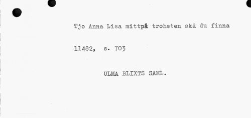 //// Tjo Anna Lisa mittpå troheten skä du finna 11482, s. 703 //// TJLMA BLIXTS SAML. ////