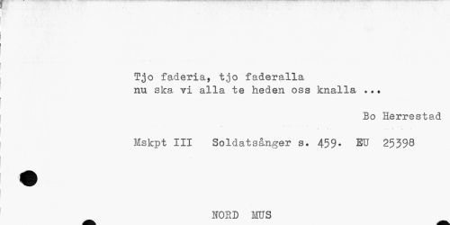 //// Tjo faderia, tjo faderalla //// nu ska vi alla te heden oss knalla //// Bo Herrestad //// • i L t • //// Mskpt III Soldatsånger s. 459- EU 25398 //// tjöt? t) wfts ////