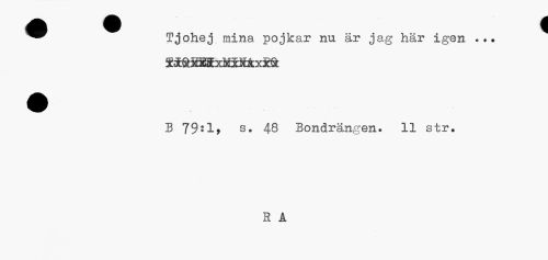 //// ^^ Tjohej mina pojkar nu är jag här igen ... ^ //// B 79:1, s. 48 Bondrängen. 11 str. //// S A ////