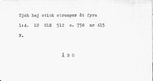 //// Tjoh hej stick strumpor åt fyra //// i, .c ^ ¦» //// 1:4. LU SLS 512 s. 758 nr 415 N. //// - //// i BO ////