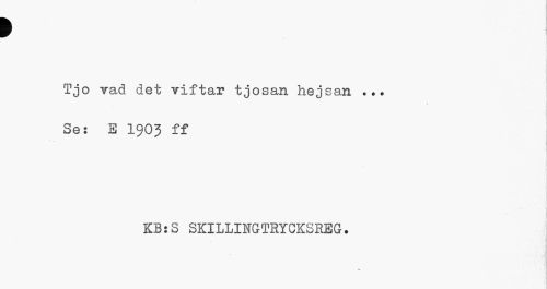 //// > ' I //// I //// Tjo vad det viftar tjosan hejsan ... Se: E 1903 ff //// _ r: - //// KB:S SKILLINGTRYCKSREG. ////