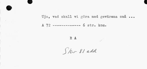 //// Tja, vad skall vi göra med gevärena små ••• //// A 72---6 str. kom. //// S a //// <- >s-. i* //// J%vr- // ////