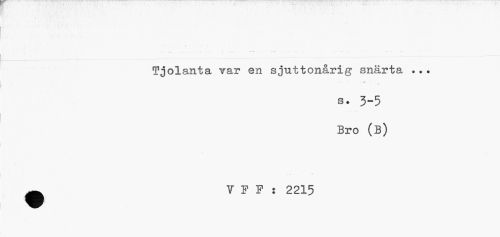 //// - - . ¦ • 'i- . ... ' -V. ---* - • • ... ¦ . . v. //// Tjolanta var en sjuttonårig snärta ... //// s. 3-5 Bro (B) //// ^ V P P : 2215 ////