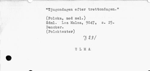 //// "Tjugondagen efter trettondagen.ff //// (Polska, med mel.) //// Sdml. Lra Malma, 9047? s. 25» //// Dencker. //// (Polsktexter) //// T>W //// TJ L M A ////