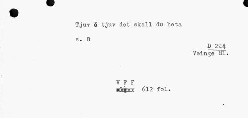 //// Tjuv å tjuv det skall du heta s. 8 //// D 224 //// Veinge Hl. //// V F F //// xtekxx 612 fol. ////