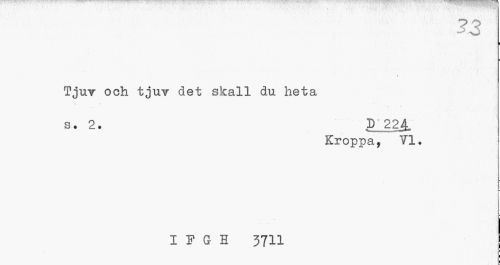 //// 33 //// / //// Tjuy och tjuv det skall du heta //// * //// s. 2. jr 22i. //// Kroppa, VI. //// I P G H 3711 i ////