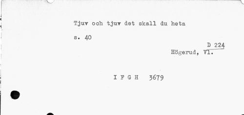 //// Tjuv ooh tjuv det skall du heta s. 40 //// D 224 //// Högerud, TI. //// •it //// I F G H 3679 ////