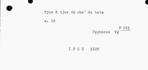 //// ^^ Tjuv å tjuv dä ska' du hetai //// s. 18 //// D 224 //// Upphärad Vg IFGH 1628 ////