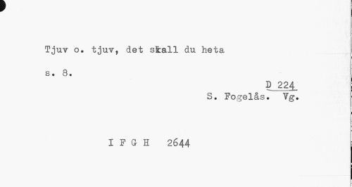 //// r //// Tjuv o. tjuv, det sfcall du heta s. 3. //// D 224 //// ^...i r t //// S. Fogelås. Yg. //// i //// I P G H 2644 ////
