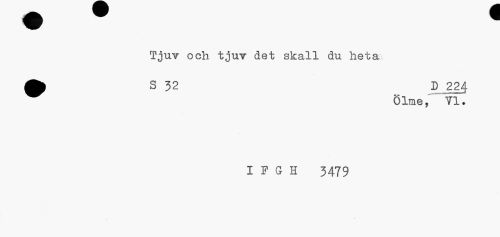 //// Tjuv och tjuv det skall du heta; //// • s 32 d 224 //// < ¦ ...mm B* //// Olme, TI. //// I F G H 3479 ////