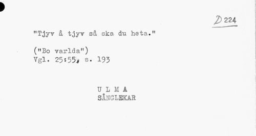 //// ¥ //// i //// "Tjyv å tjyv så ska du heta." ("Bo varlda") //// Vgl. 25155^ s. 193 //// i //// U L M A SÅNGLEKAR ////