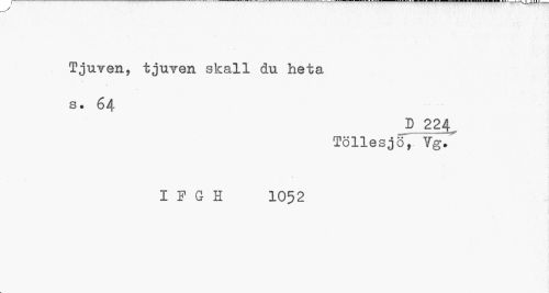 //// Tjuven, tjuven skall du heta //// s. 64 //// D 224 //// Töllesjö, Yg. //// I F G H 1052 ////