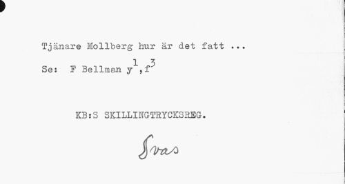 //// Tjänare Mollberg hur är det fatt //// 1 3 //// Se: F Bellman y ,f //// KB:S SKILLIITGTRYCKS REG. //// J^tX) ////