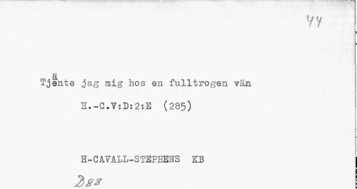 //// vy //// ¦ //// - //// Et //// Tjänte jag mig hos en fulltrogen tän //// ^... ... 1 * //// H.-C.V:D:2:E (285) //// H-CAVALL-STEPHEHS KB j ////