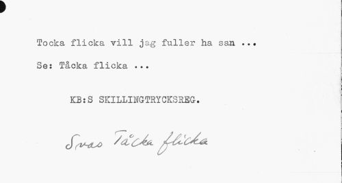 //// Toeka flicka vill jag fuller ha san ... Ses Täcka flicka ... //// KB:3 SKILLINGTRYCKSREG. ////