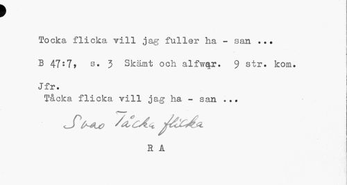 //// f //// Tocka flicka vill jag fuller ha - san B 47• 7» 3. 3 Skämt och alfwq,r. 9 str. kom. //// Jfr. 1 //// i //// Tå OlCct flicka vill jag ha - san ... //// 1 //// R A ////