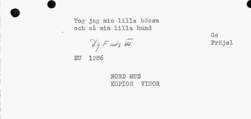 //// m I //// Tog jag min lilla bössa //// och så min lilla hund //// _ Go //// 'ifj FiJ-i W Fröjel //// eu 1286 //// hord ms kopior yisor ////