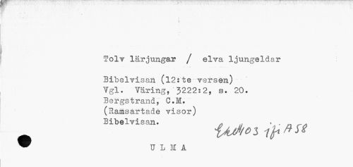 //// »I • .« //// 1 ' . . : //// Tolv lärjungar / elva ljungeldar //// ... ... . . . . .J . .. y, . //// Bibelvisan (12:te versen) Vgl. Väring,'3222:2, s. 20. //// Bergstrand, C.M. (Samsärtade visor) //// Bibelvisan. ^ .. . , //// iAJtoi tfrfttt //// ® U L M A ////
