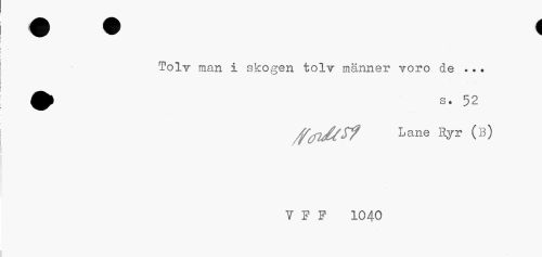 //// Tolv man i skogen tolv männer voro de ... //// //(fiMtf Lane Ryr (B) //// Y f f 1040 ////