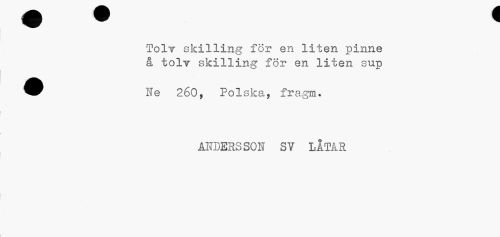 //// Tolv skilling för en liten pinne å tolv skilling för en liten sup //// ^^^ Ne 260, Polska, fragm. //// ANDERSSON SY LÅTAR ////