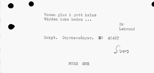 //// v , //// Tomma glas i gott kalas Värden icke hedra ... Ä Dr //// ^^ Leksand //// Mskpt. Dryckessånger. EU 404&7 //// SvvO //// NORD MUS ////