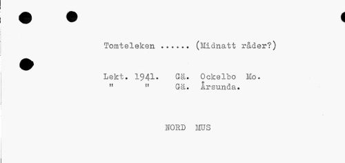 //// Tomteleken ... (Midnatt råder?) //// Lekt. 1941. Gä. Ockelbo Mo. " n Gä. Arsunda. //// * //// NORD MUS ////
