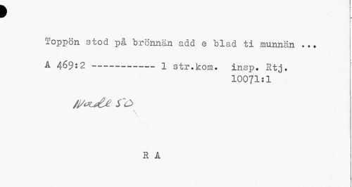 //// t //// \ i //// Toppön stod på brönnän add e blad ti munnän ... //// A 469:2 --- 1 str.kora. insp. Rtj. //// 10071:1 //// /i/oué£ S //// \ X //// R A ////
