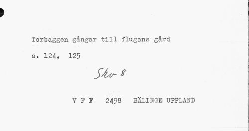 //// > i //// ¦ //// Torbaggen gångar till flugans gård //// ¦ //// • • • ^! s. 124, 125 //// i //// | //// . . j J //// 1 PF 2498 BÄLINGE UPPLMD ////