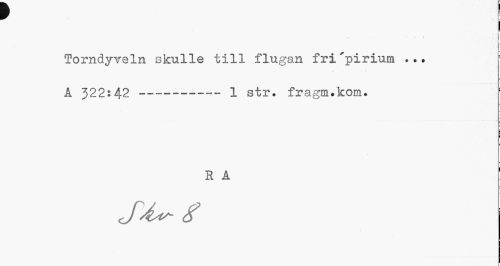 //// v //// I //// I //// Torndyveln skulle till flugan fri"pirium ... A 322:42 --- 1 str. fragm.kom. //// H A //// så^ g ////