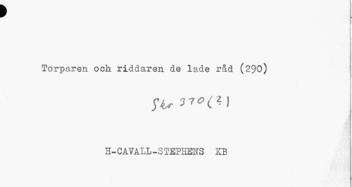 //// t //// Torparen och riddaren de lade råd (290) //// 370(2) //// H- CA VALL -S TEPHElf 3 KB ////