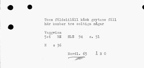 //// Toss fåldelilåll kåok grytane fåll ^^ här komber tre soltiga raågar //// Vaggvisa //// 5:6 SE SLS 94 s. 51 H s 36 //// ITordl. 65 A B 0 ////