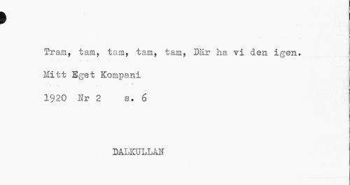 //// I //// Tram, tam, tam, tam, tam, Där ha vi den igen. Mitt Eget Kompani 1920 Nr 2 s. 6 //// DALKULLAS ////