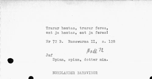 //// ¦ I I . . ',.' . .'¦ ... , , • //// K //// t //// Trarar hemtas, trarar feres, ent ja hemtas, ent ja feresl //// Hr 72 B. Russwurna II, s. 128 //// hä ^ //// Jmf //// ^^ Spinn, spinn, dotter min. //// TTO"RT)LÄTfT)ET? BA.RNVTSOR ////