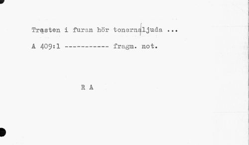 //// f 1 Trasten i furan hör tonernaljuda //// t //// A 409:1 --- fragra. not. //// RÅ //// I ////