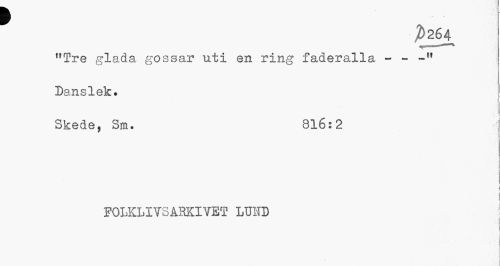 //// J>264 //// frTre glada gossar uti en ring faderalla - - -ft Danslek. //// Skede, Sm. 816:2 //// 1 //// FOLKLIVSARKIVET LUilD //// .'•aj //// * ////