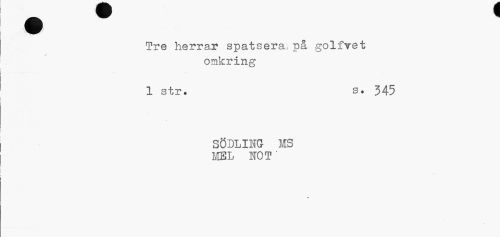 //// Tre herrar spatsera, på golfret //// omkring //// 1 str. s. 345 //// SÖDLIHG MS MBL NOT' //// « ////