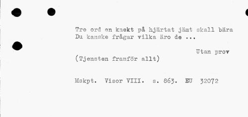 //// Tre ord en knekt på hjärtat jämt skall bara Du kanske frågar vilka äro de ... //// i //// Utan prov //// (Tjensten framför allt) //// Mskpt. Visor VIII. s. 863. EU J2072 ////