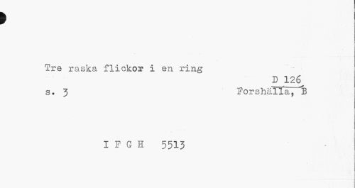 //// > //// Tre raska flickor i en ring //// D 126^ //// s. 3 Forshälla, "B //// I F G H 5513 ////