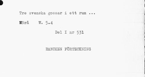 //// i //// i //// Tre svenska gossar i ett rum ... //// Korå W. 5-4 //// Del I nr 531 RåNCKEN FÖRTECKNING //// 1 //// i ////